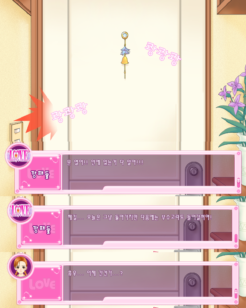 화면이 바뀌고 여주를 위협하는 깡패들;