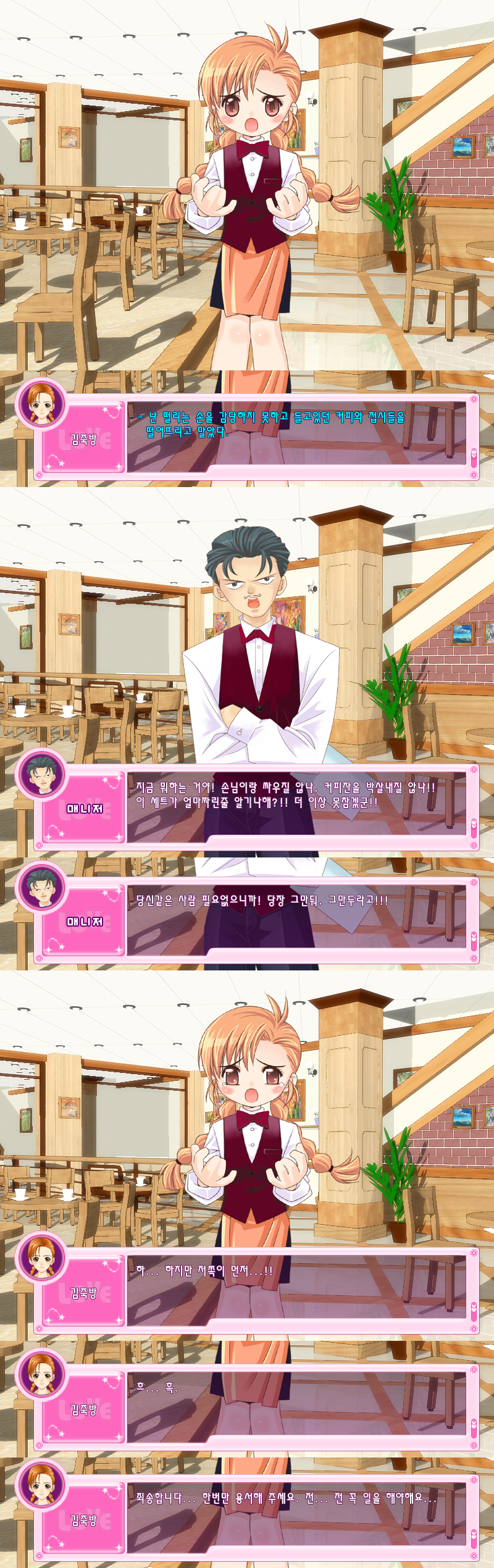 충격받은 울 죽방이는 그릇을 떨구고 말고.. 인성 파탄난 카페사장 또 졸라 지랄시작;