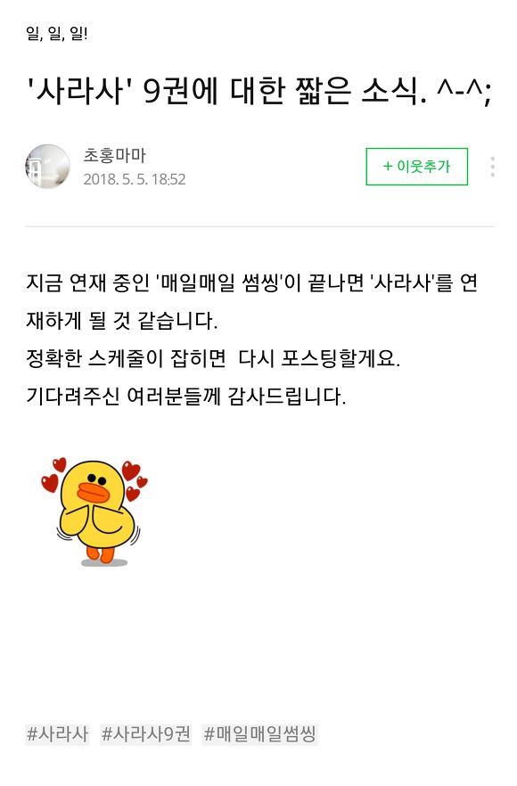 간간히 연재 소식을 찾는 독자들이 있었으나 그 뿐이고