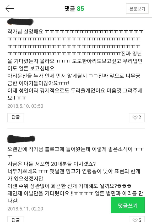 얼마 전 우연히 찾게 된 작가님 블로그에 글 하나가 올라와 있었음