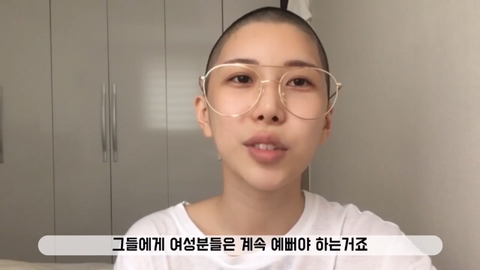 제목은 정메지님이 각성하기 전, 페미니즘에 대해 얘기하는 친구의 말을 듣고 한 생각이래. 딱 지금의 흉자와 같음. 그랬던 사람이 각성해서 탈코하고 유튜브에서 페미 유튜버로 활동하고 있지