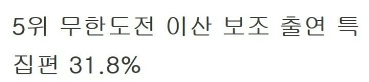 5위 무한도전 이산 보조 출연 특집편 31.8%