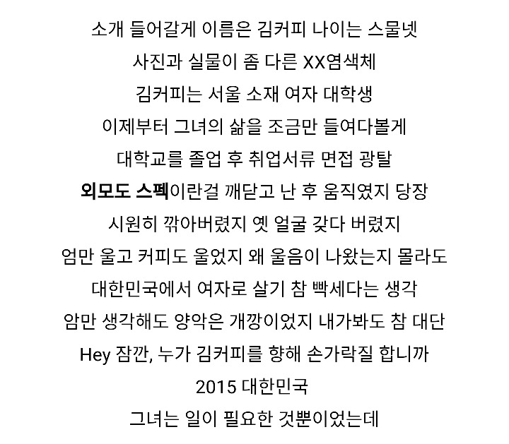 2015년 벌표한 커피카피 아가씨는 랩부분은 모두 매드클라운 작사