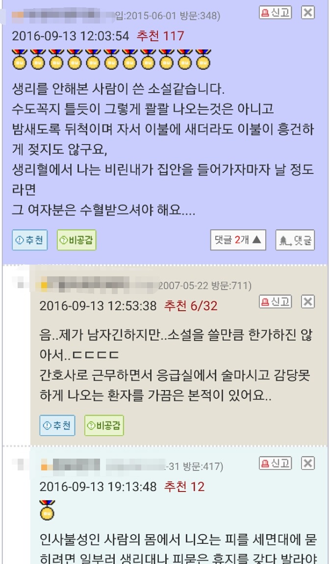 댓글에서 주작 아니거든욧!!! 하면서 부들거리는 오윾이 (갈색 댓글이 글쓴이)