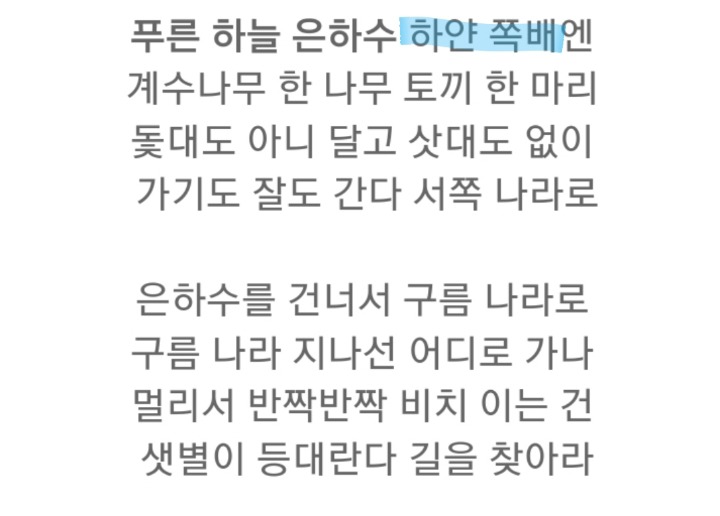 푸른 하늘 은하수~ 하얀 쪽배에~