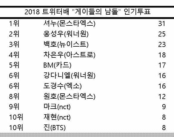 약 150명의 트위터 게이가 참가했으며... 각 받은 표수는 이정도입니다. 온리 재미용❗