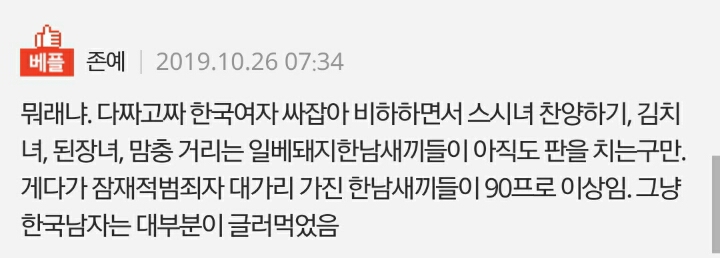 욕을 먹어야 하냐는 거지. 물론 한남이라는 용어가 모든 한국남자를 싸잡는건 아니겠지만..