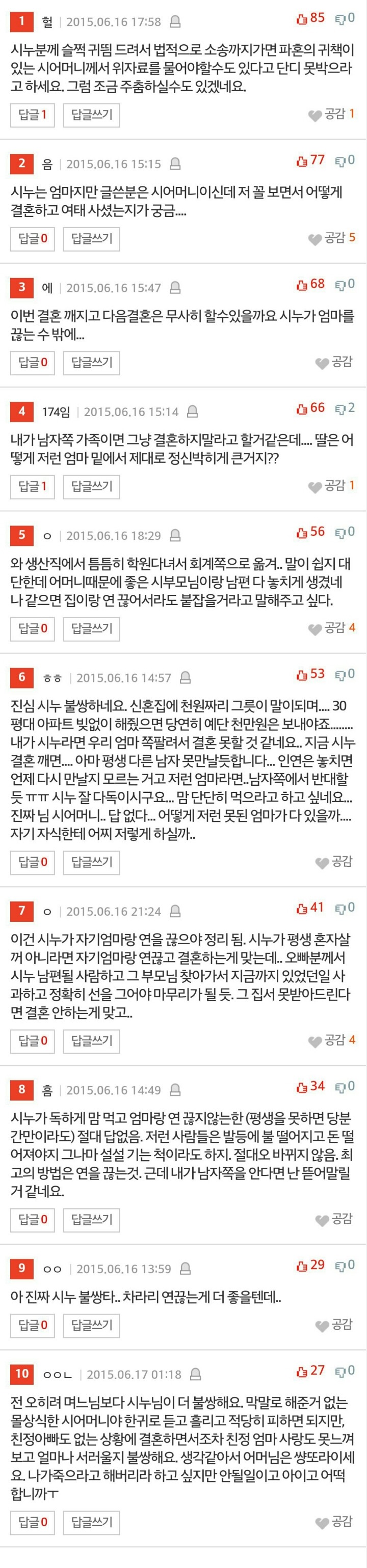 보아하니 글쓴이랑 남편도 시어머니땜에 진심 고생많았을거같음.