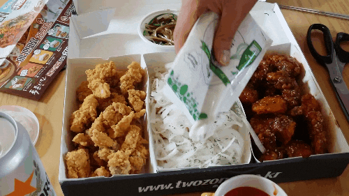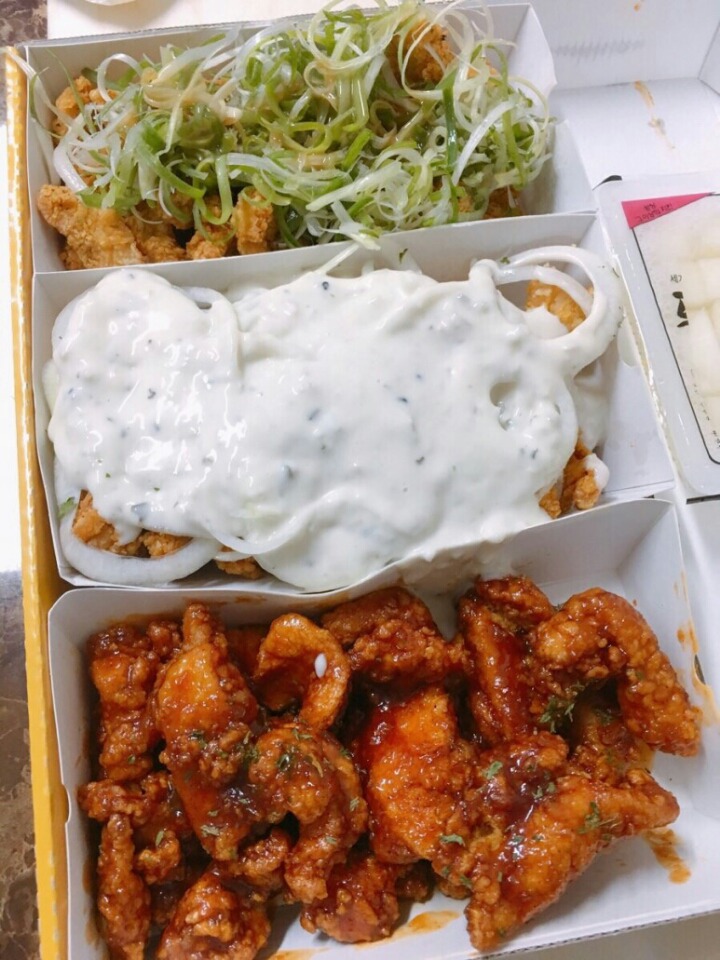 작성자칭구칭긔ㅎ 작성시간 19.11.01 충만치킨 존맛탱임 스노우랑 고추장티꾸닭이랑 같이먹으면 그냥 죽음ㅠ 제발 먹어줘 갠적으로 간장티꾸닭은 넘 달아서 별루얐고 고추장티꾸랑 젤 잘맞았음