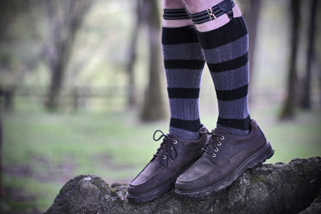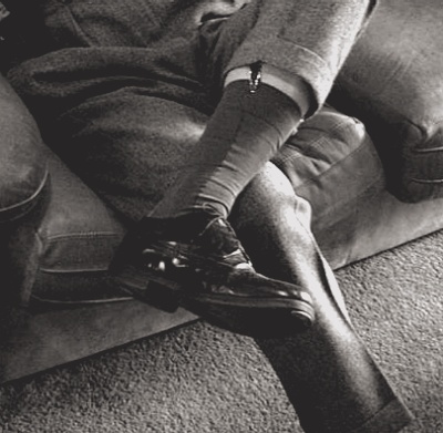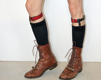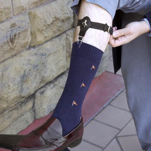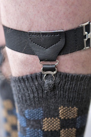 여성용과 다르게 남성용은 허벅지가 아니라 종아리에 고정되는 방식이다. 클래식 정장을 선호하는 사람이 아니면 잘 하질 않는다