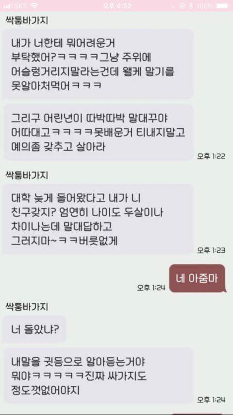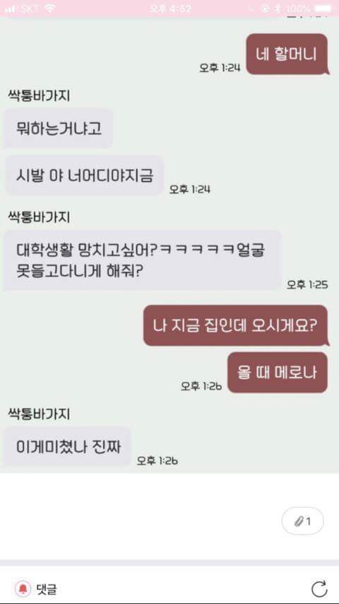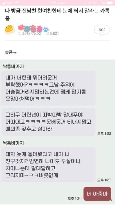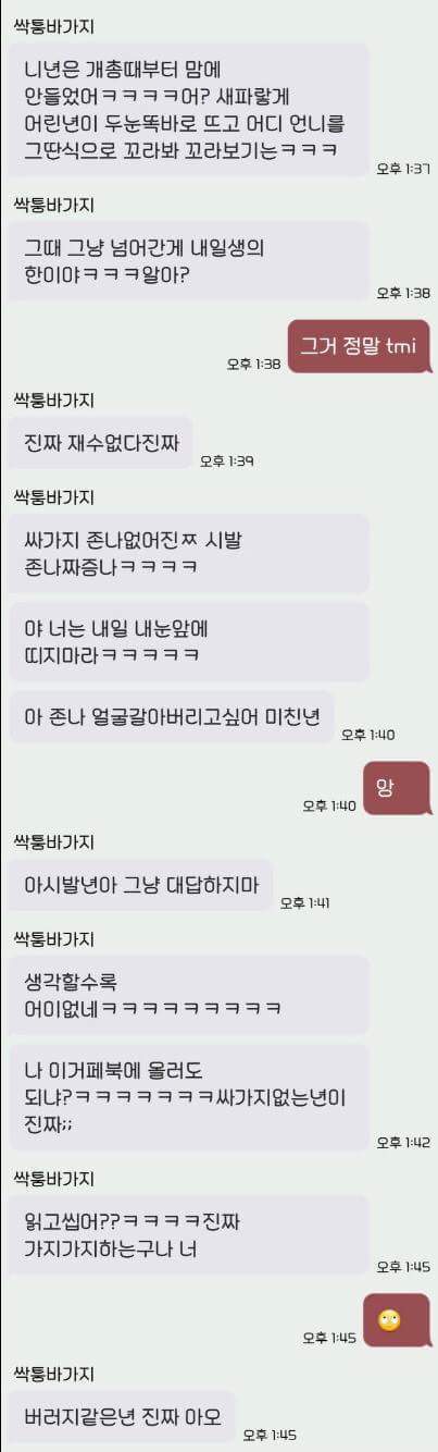 작성자여자패는사람바퀴벌레 작성시간 19.12.05 얼쑤-!