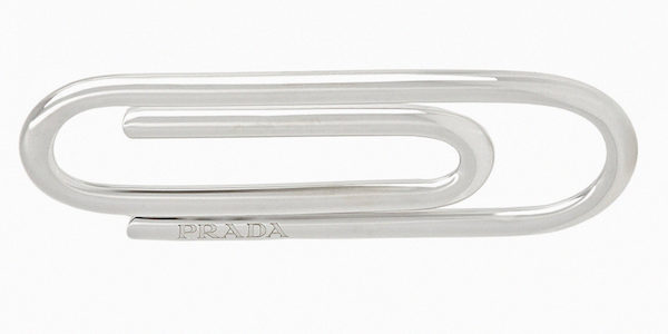 $185의 가격.프라다의 말에 의하면, 종이 클립형태를 한 머니 클립.