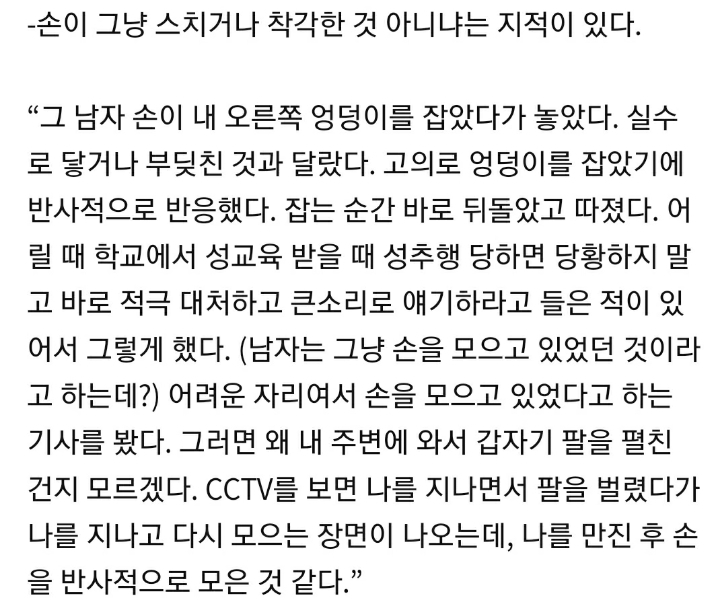 피의자 '피해자의 엉덩이와 자신의 손 접촉X'