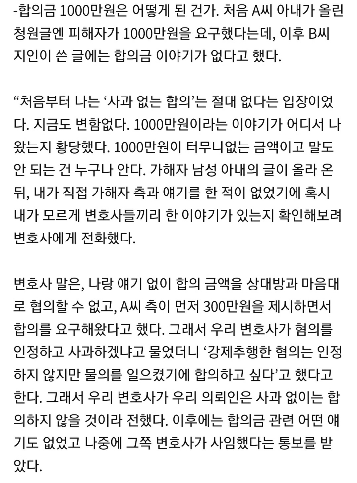 = 피해자가 합의금 요구한적없으며 합의금 이야기는