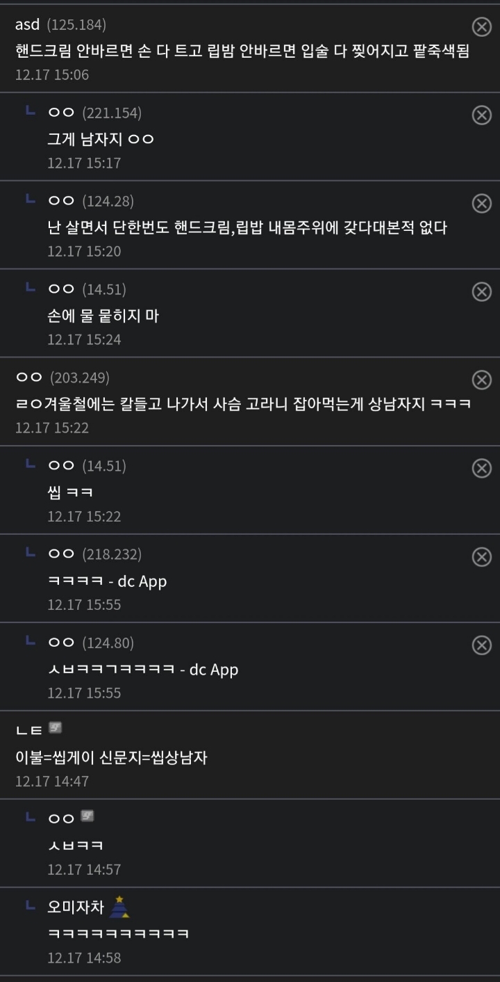 [스크랩] [기타]디시인이 정리한 겨울철 게이특징...jpg 작성자차ㅓㅊ타ㅏ텉|작성시간19.12.18|조회수10,170 목록 댓글 17 글자크기 작게가 글자크기 크게가 ㅏ.. 다음검색 스크랩 원문 : 이종격투기 현재 게시글 추가 기능 열기 북마크 공유하기 신고 센터로 신고 댓글 댓글 17 댓글쓰기 답글쓰기 댓글 리스트 작성자iinsomnia | 작성시간 19.12.18 재기하는게 상남자지~ 작성자cigret | 작성시간 19.12.18 남자답게 죽어~ 작성자습관의 힘 | 작성시간 19.12.18 온수샤워.....시발 저것들은 씻지도 않나봐 작성자삼색호시 | 작성시간 19.12.18 재밌나봐 작성자종천러(20) | 작성시간 19.12.18 ㅇㅋ 그럼 재기하겠다는 거네 댓글 전체보기