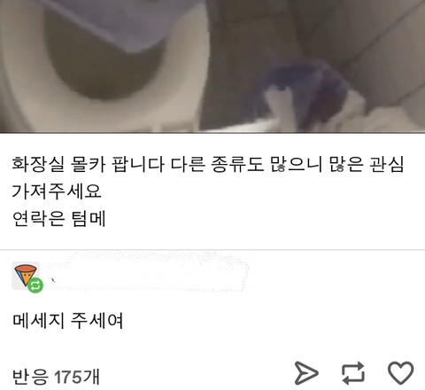 그리고 추가적으로, 올해 올라온 가사야. 이제는 직접 찍는 수법도 있다고해. 그래서 혹시나 화장실 옆칸이 고장이면 되도록 그 옆칸은 피하는걸 추천해. 볼일 볼때에도 화장실 위 아래 트여진 부분 조심하고.