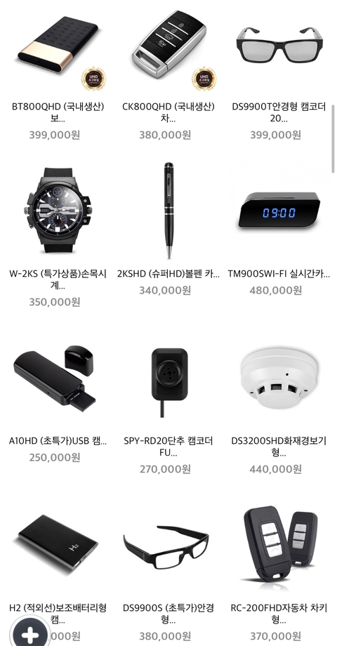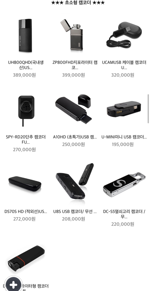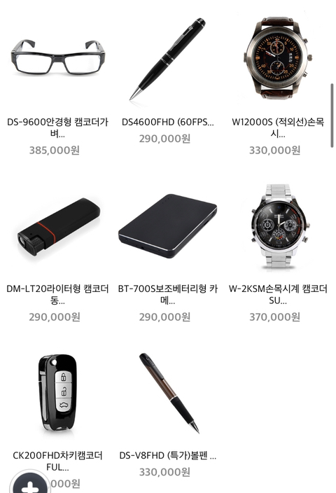 위에 사진은 구글에 초소형 카메라, 몰래카메라 검색해서 판매하는 사이트에 들어가서 실제로 판매되는 제품 캡쳐해온거야. 다른 쇼핑몰도 다 찾아봤는데 저렴한 건 2만원 부터 저런가격으로 판매되고 있어.