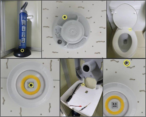이렇게 변기 안쪽에 설치해둔 경우도 많아. 변기 뚜껑도 예외는 아니야.