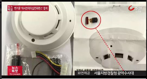 천장에 달린 화재경보기 또한 불법카메라일 수도 있어. 실제로 저런 형태로 팔리고 있기도 해.