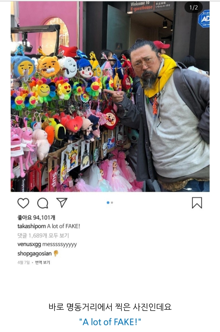그래서 저 조뽄 작가는 저런 글을 남기기도 했음.. 명동의 많은 카피들에 불쾌감을 드러낸 것.