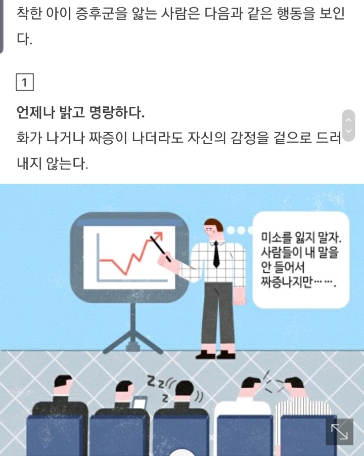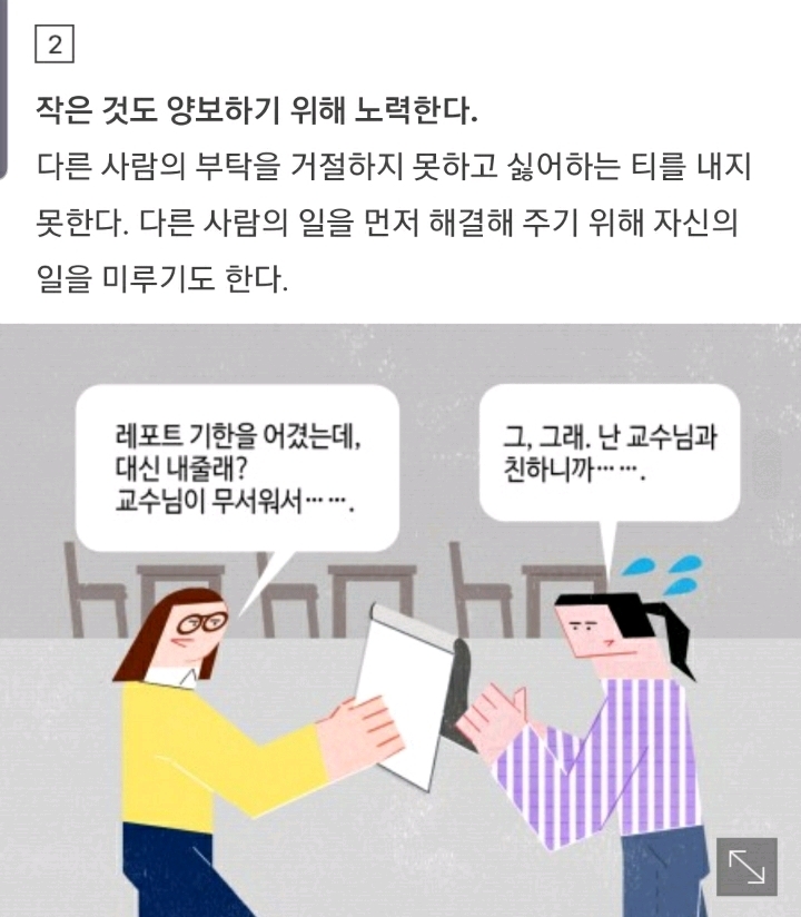 -표현을 잘 하지 못 하며, 말하는 것보다 듣는 것을 좋아한다.