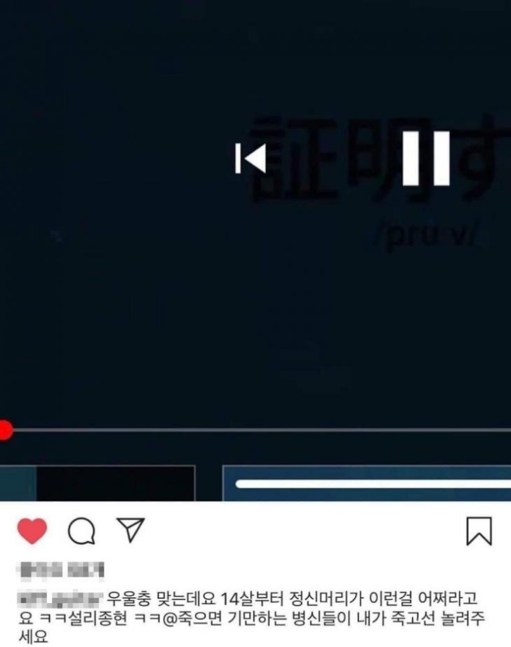 16일 래퍼 빈첸은 자신의 인스타그램 부계정으로 "우울충 맞는데요. 14살부터 정신머리가 이런걸 어쩌라고요ㅋㅋ 설리 종현ㅋㅋ 죽으면 기만하는 XX들이 내가 죽고선 놀려주세요"라는 글을 적었다.