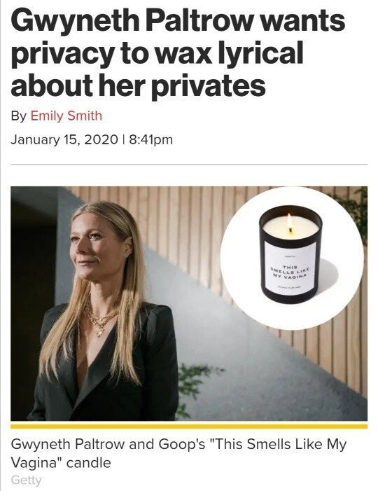 기네스 펠트로의 생식기 냄새가 나는 향초 출시..