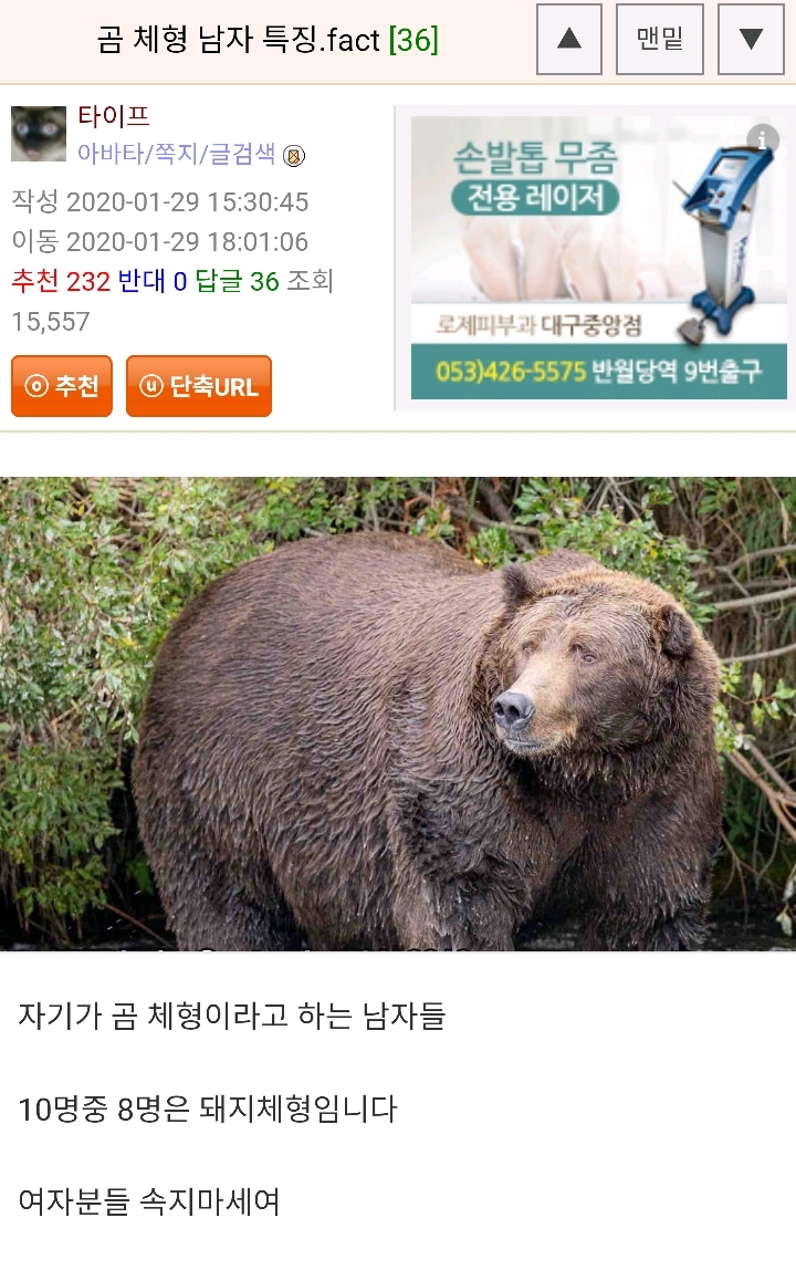 ㅇㄱㄹㅇ ㅂㅂㅂㄱ 내 기준 한국에서 곰체형 조진웅