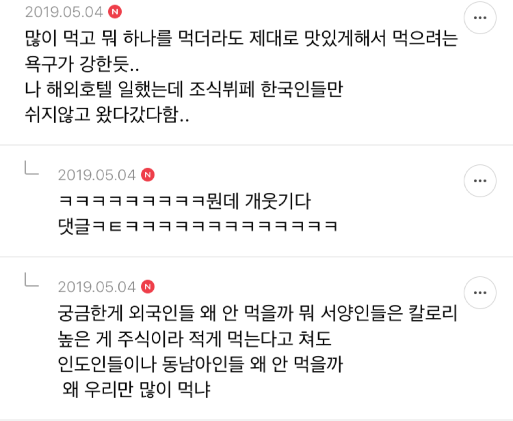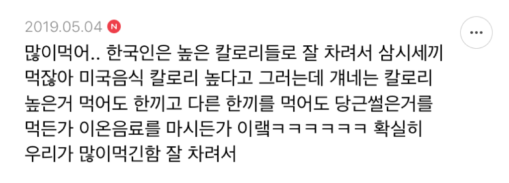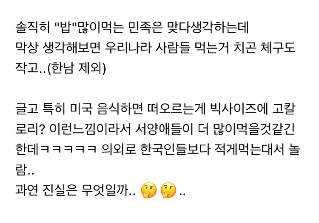 ㅁㅈ 이렇게 보니 한국인 먹는양에 비해 살 많이 안찌는듯..근데 한남은 왜..🤔