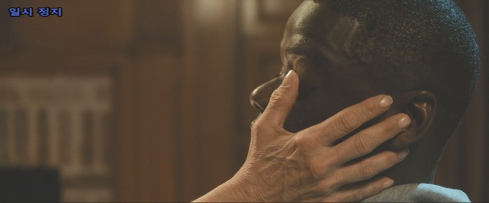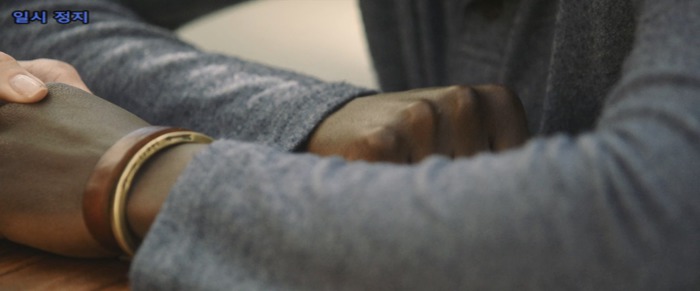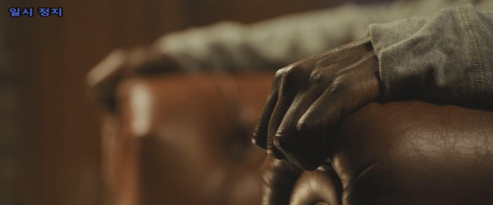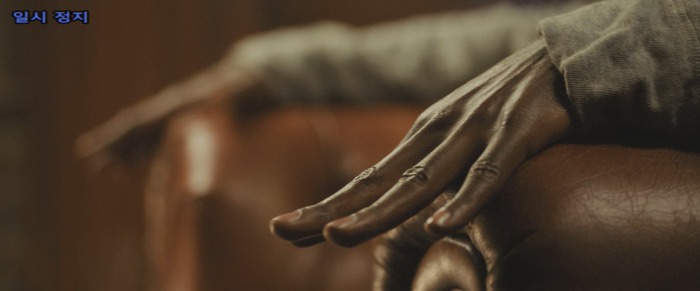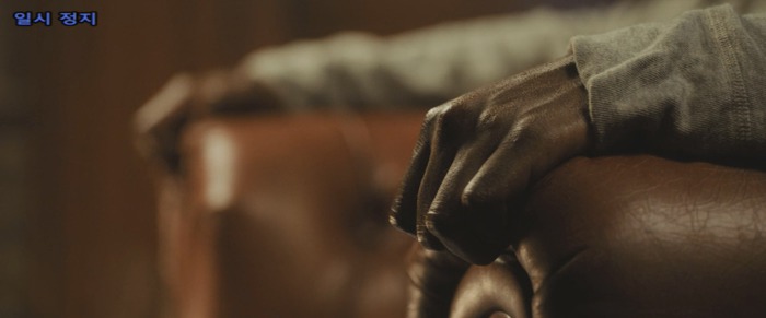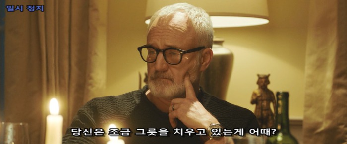 초조하게 주먹으로 탁자를 두드리는 크리스