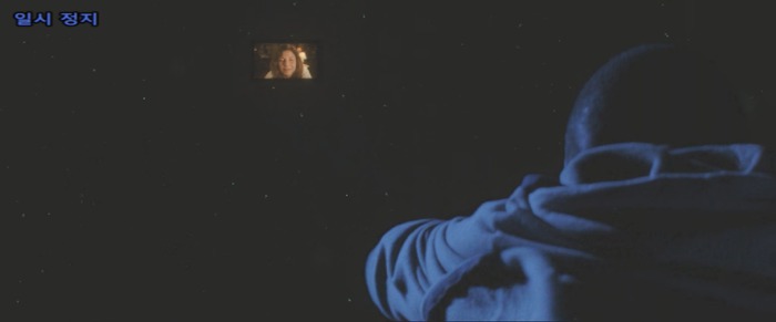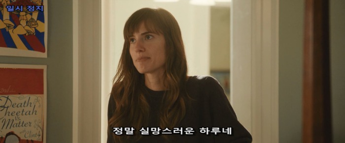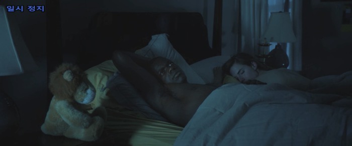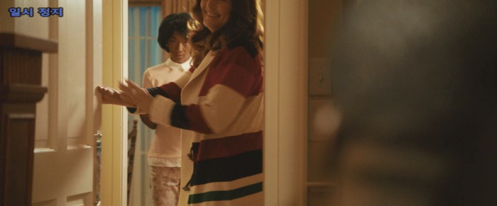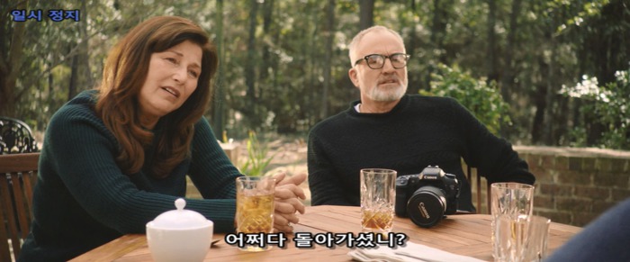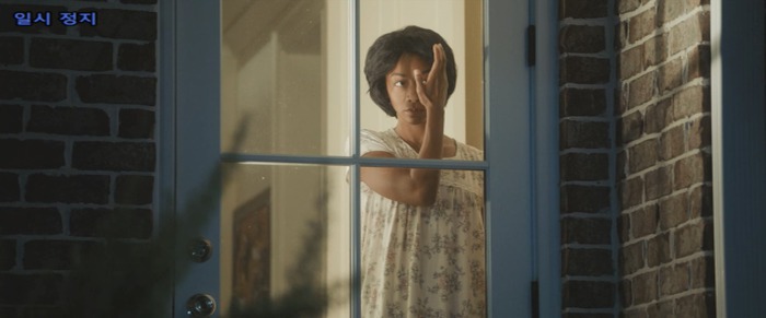 크리스 등 뒤로 유령같이 스쳐가는 조지나