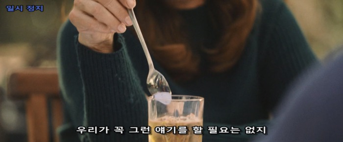 말하는 동안 스푼으로 계속 휘젓는 중