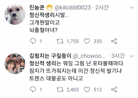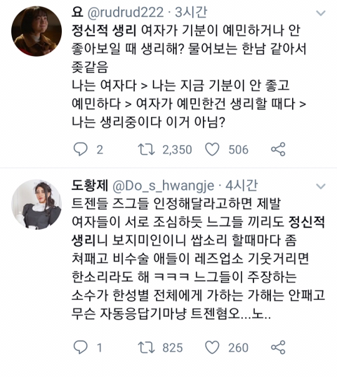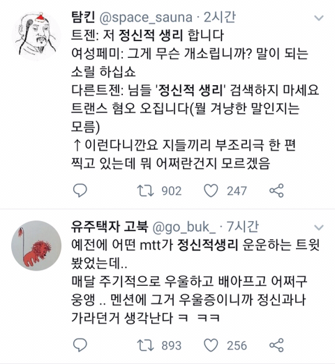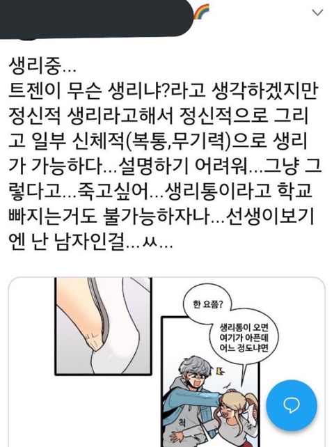 [스크랩] [기타]트위터 실트 : 정신적 생리 작성자누가 문을 이렇게 황현희?!|작성시간20.02.07|조회수7,125 목록 댓글 20 글자크기 작게가 글자크기 크게가 출처 : https://www.dmitory.com/issue/109456984발단정신적 생리하시느라 괴로우시다는 트젠 등장이에 대한 트위터리안들 반응 다음검색 스크랩 원문 : *여성시대* 차분한 20대들의 알흠다운 공간 현재 게시글 추가 기능 열기 북마크 공유하기 신고 센터로 신고 댓글 댓글 20 댓글쓰기 답글쓰기 댓글 리스트 작성자하와이 소년 | 작성시간 20.02.07 복통에 무기력? 뭐 체한거 갖고 생리한다 지랄이냐 작성자나로 아플 거라면 차라리 | 작성시간 20.02.07 아 나 그거 뭔지 아는데 그거 걍 트젠들 재기하라는 신체적 정신적 신호임; 작성자눈누..난나 | 작성시간 20.02.07 뇌출혈 개웃곀ㅋㅋㅋㅋㅋㅋㅋㅋㅋㅋㅋㅋㅋㅋㅋㅋㅋㅋ 작성자너와나의나라 | 작성시간 20.02.07 짤린 부분의 통증인데 헷갈리셨나봐요! 작성자내드림즈연봉상승 | 작성시간 20.02.08 진짜 정신과 가 댓글 전체보기