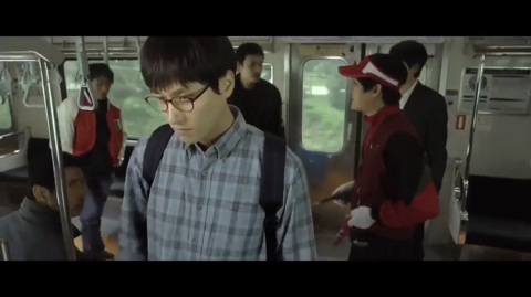 지하철에서는 잡상인 동범(김성균)이 칼을 팔고 있음.