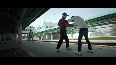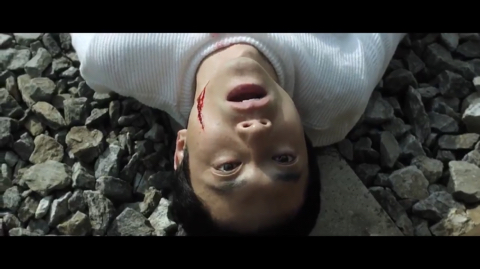 갑자기 칼에 맞아버린 정민은 중심을 잃고 선로로 떨어짐