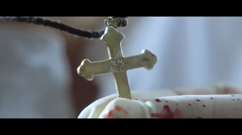 마사지사의 목걸이를 본 석태 (목걸이에 적혀있는 글자는 ‘성지’. 성지 고아원은 석태가 살던 고아원임)