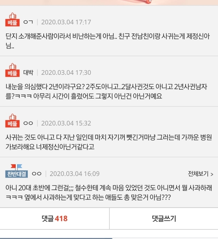 몇몇이 파?를 나눠서..저보고 그래도 사과는 해야하는게 맞는거같다는 친구와