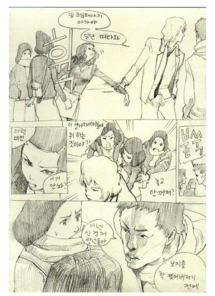 짱이라는 만화에 대해 직접 팬만화를 그렸는데 대사에 보지를 찢는다는 부분이 들어감