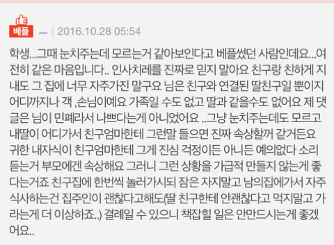 친구어머니도 제가 안자고 가는날이면 ㅇㅇ이 안자고가니? 자고가 이러시구 언제 술많이드시고 오셔서 ㅁㅁ(친구이름)이랑 친하게 지내줘서 고맙고 딸처럼 예뻐한다고 가끔? 말씀하시고
