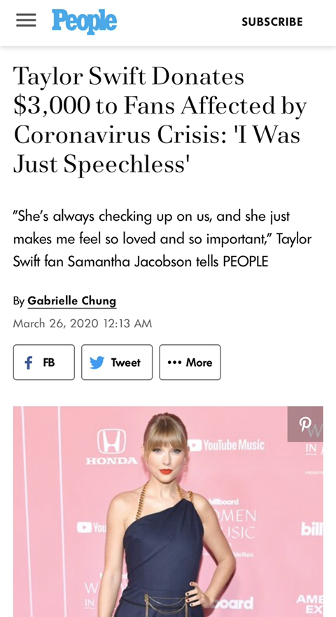 그런 팬들의 사정을 알고 도움을 준 팝스타는 바로 테일러 스위프트