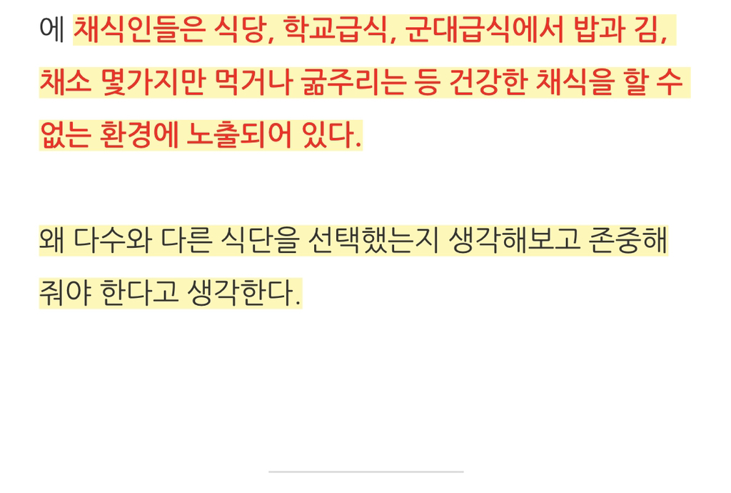 답댓글 작성자아이스홍시내놔 작성시간 20.04.03 채식한다는 사람한테 영양실조 웅엥 거리는 사람 진짜 많이봤는데 고기 먹는 사람한테 고혈압 콜레스테롤 웅엥 거리는 사람 거의없지않아??ㅋㅋ 이것만 해도 사회 분위기가 육식지향 채식지양인게 보이는데. 고기 없으면 밥 아예 안먹는 애들도 많아 육식 강요 맞음. 고기집옆에 고기집 동네에만 해도 고기집 조오오온나 많은데 이게 강요가 아니라고 할 수 있나? 대체 음식 없이 고기만 공급하는데 당연히 고기먹지..ㅋㅋ 채식 식당도 고기집만큼 있다면 그거야 말로 선택이지. 공급량이 다른데 어떻게 육식 채식이 선택이라고 생각하지..? 시작점 자체가 다름. 외국처럼 비건식당이 활성화된것도 아니고...우리나라는 채식주의자가 살기 힘듦