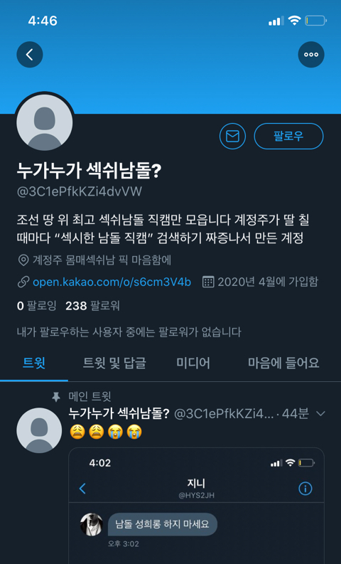 섹쉬남 워딩 쓰는 거 보면 계정주 쭉빵하는 것 같은데