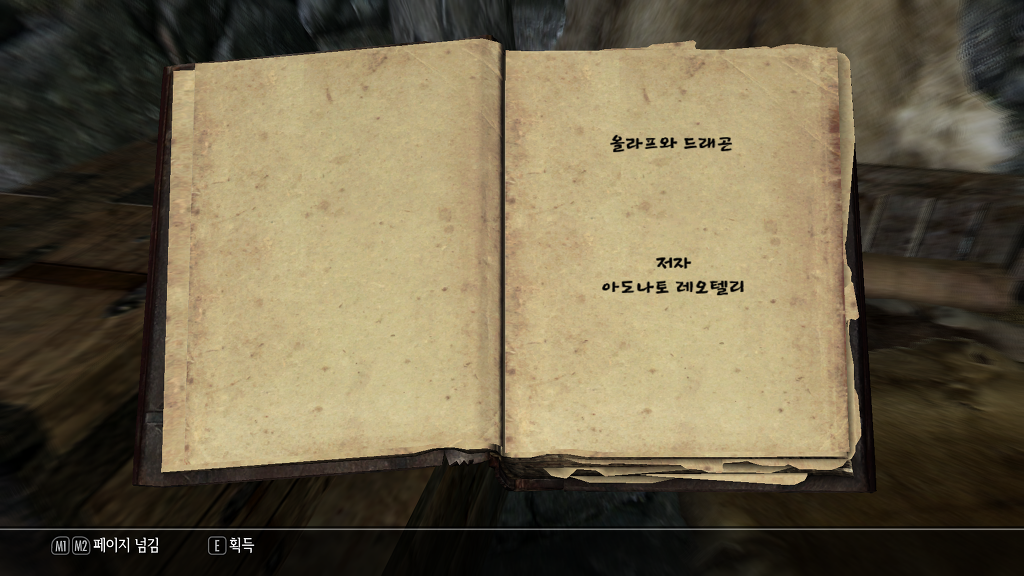 스카이림에는 애꾸눈 올라프라는 전사가 있었어. 만춘도 어렸을 때 스치듯이 그의 이름을 들어본 기억이 있었지. 올라프는 대단히 유명한 용사여서, 해마다 그를 기념하는 행사가 치러질 정도였거든.