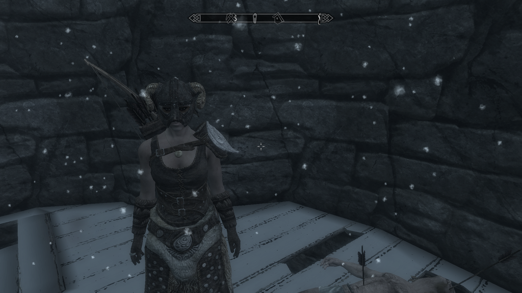 이미 문을 지나가려다 죽은 산적의 시체가 놓여있어.