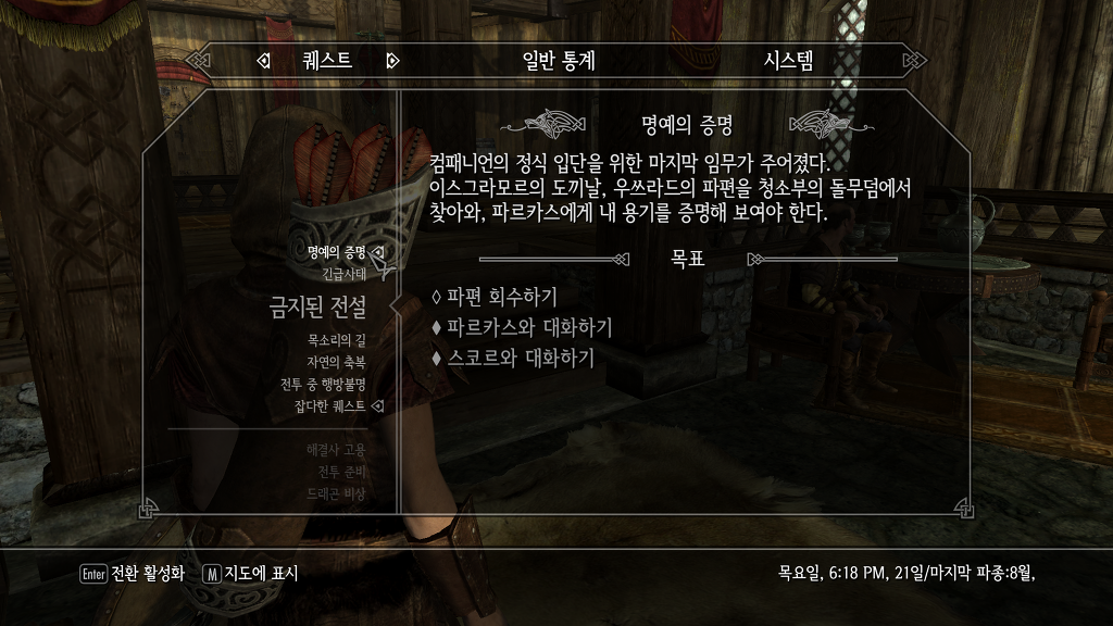 스코르 : 그놈은 얼간이로 보였지만, 만약 그자 말이 사실이라면 컴패니언의 명예를 위해서 그것을 찾아내야 해.