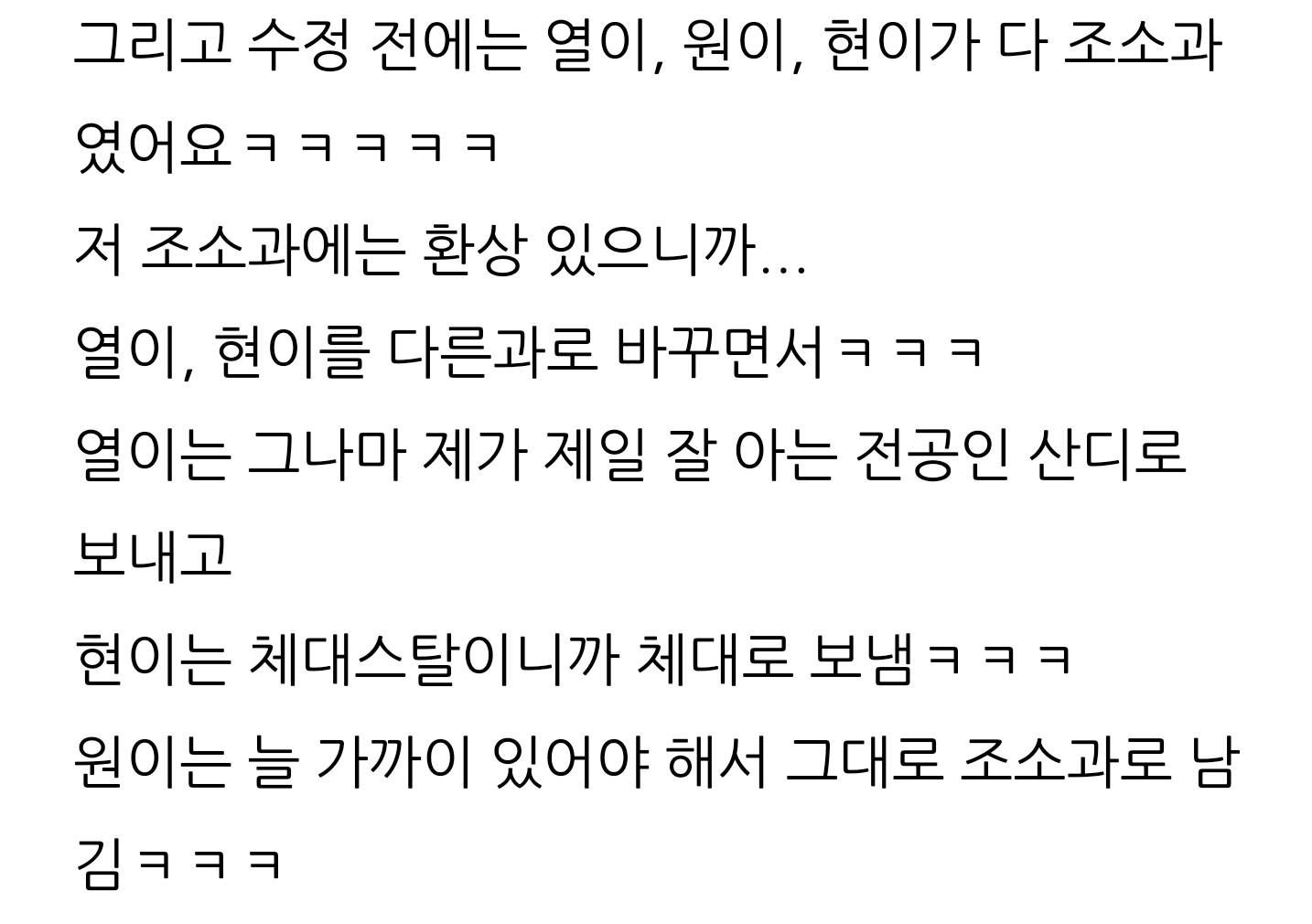 셋 다 같은 과였으면 기싸움 대박 오졌을듯ㅋㅋㅋㅋㅋㅋ