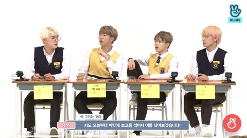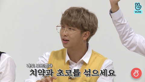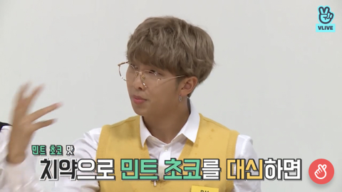 RM : 저도 오늘부터 치약에 초코를 섞어서 이를 닦아보겠습니다. (매우 진지한게 포인트)
