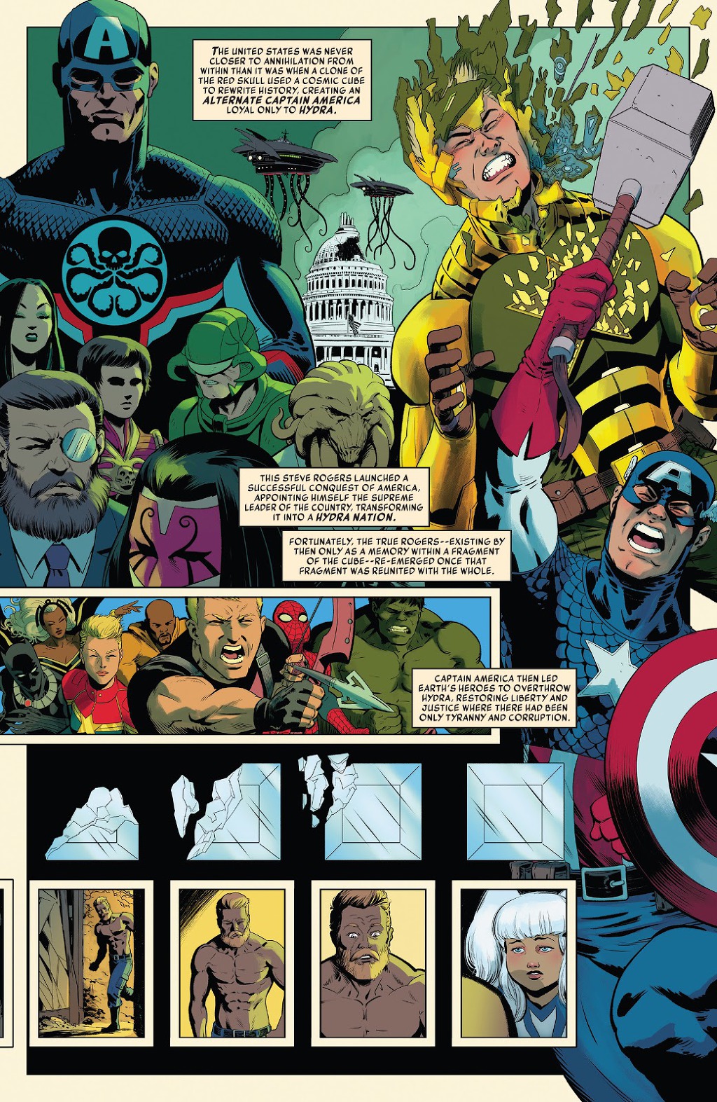 큐브를 통해 나치가 승리한 세계의 하이드라인 캡틴을 이 세계에 바꿔치기 해놨단게 레드스컬의주장이죠.
