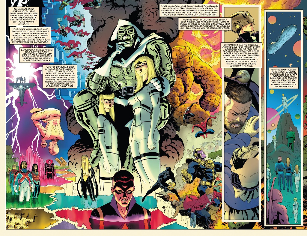 절대자가 된 '몰큘맨'과 그 힘을 빌린 판타스틱4가 복구하러 몇년간 우주를 떠돌게됩니다.