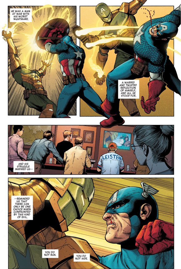 이후 수감당한 또다른 자신 캡틴하이드라와 캡틴아메리카가 대화하나 서로 설득하지못하고
